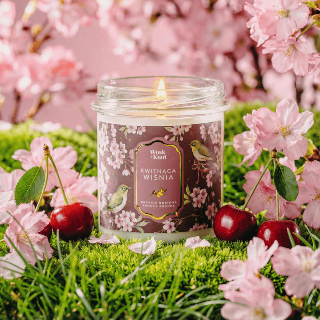 Świeca sojowa Kwitnąca Wiśnia -Wosk i Knot
