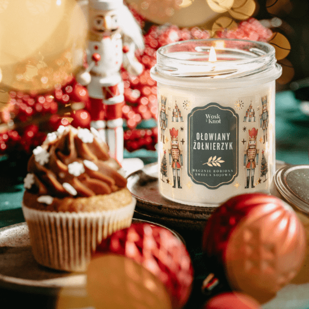 Opis produktu Ołowiany Żołnierzyk to świeca sojowa, która przenosi w nostalgiczną podróż do czasów dzieciństwa. Jej aromat przywołuje wspomnienia zabawy drewnianymi zabawkami w ciepłym, domowym zaciszu. To zapach pełen spokoju i elegancji, idealny na zimowe wieczory, kiedy pragniemy otulić się atmosferą przytulności i relaksu.