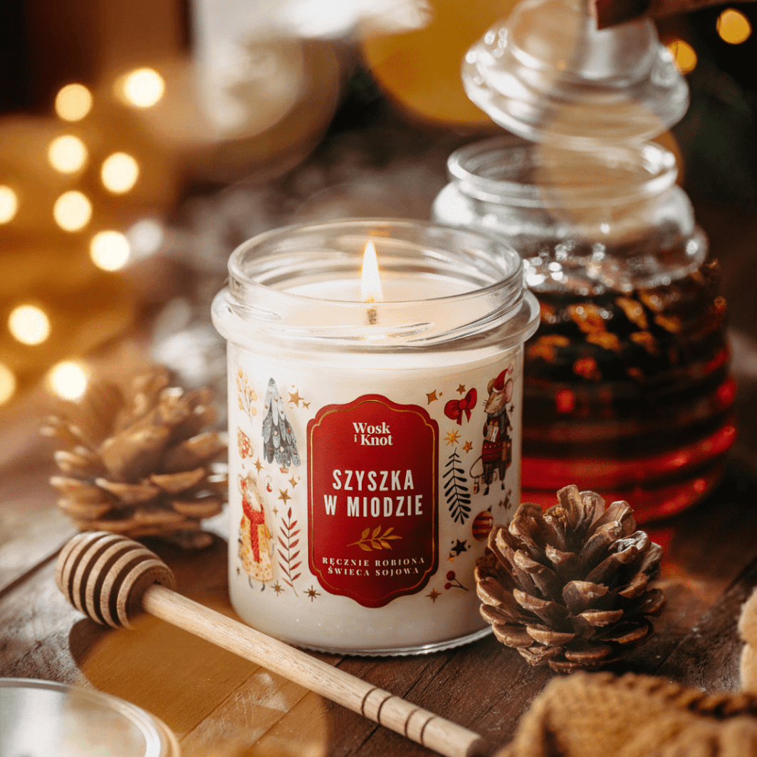 Świeca Sojowa Szyszka w Miodzie – Wosk i Knot 300 ml