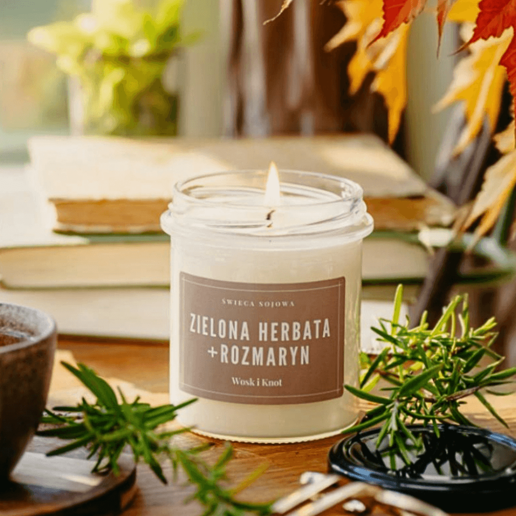 Świeca Sojowa Zielona Herbata i Rozmaryn – 300 ml